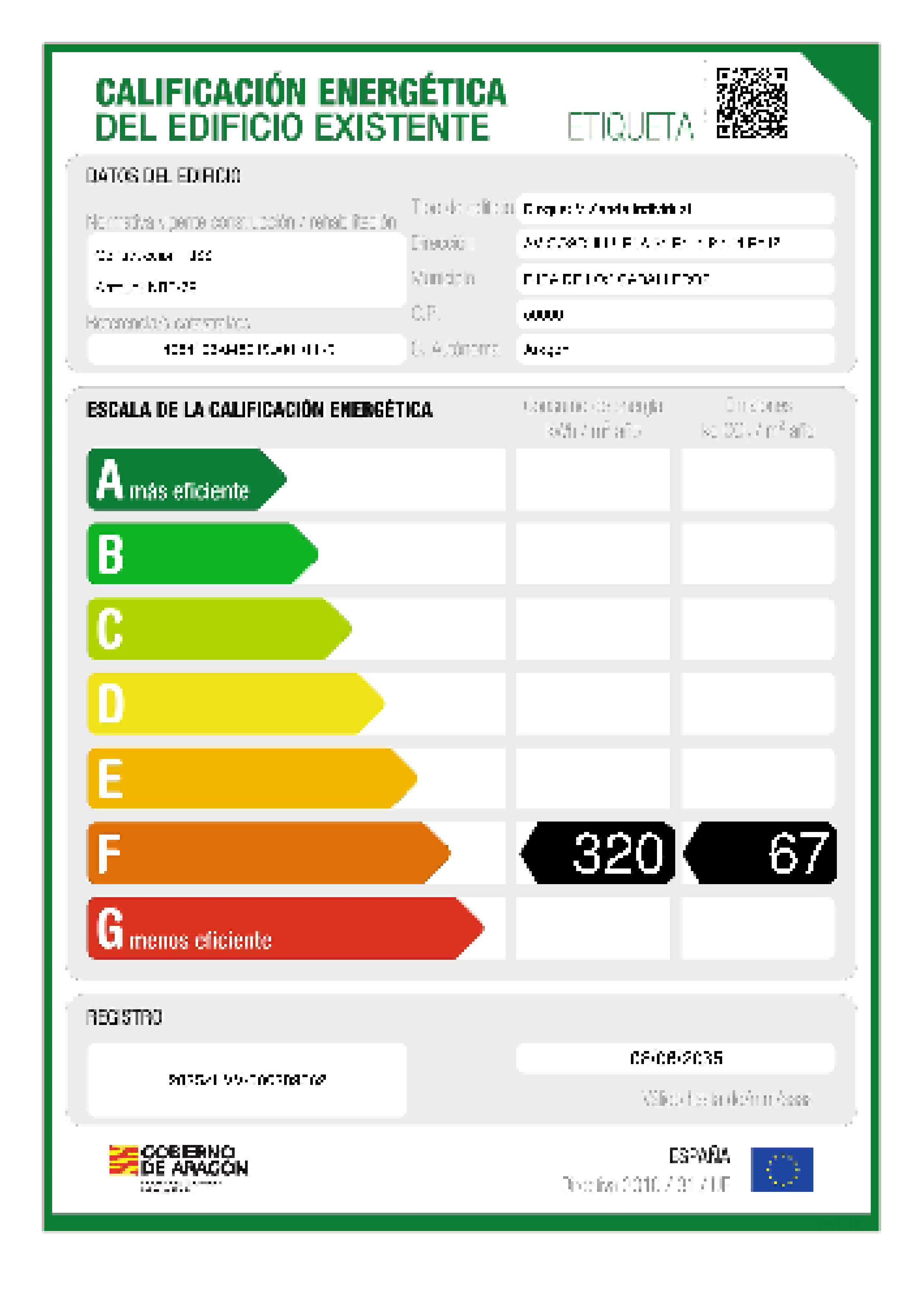 certificación energética , calificación de consumo: f , valor de consumo (kwh/m2 año): 320,10 , calificación de emisiones: f , valor de emisiones (kgrco2/m2 año): 67,40 , fecha de emisión: 08/06/2025 , fecha de caducidad: 08/06/2035